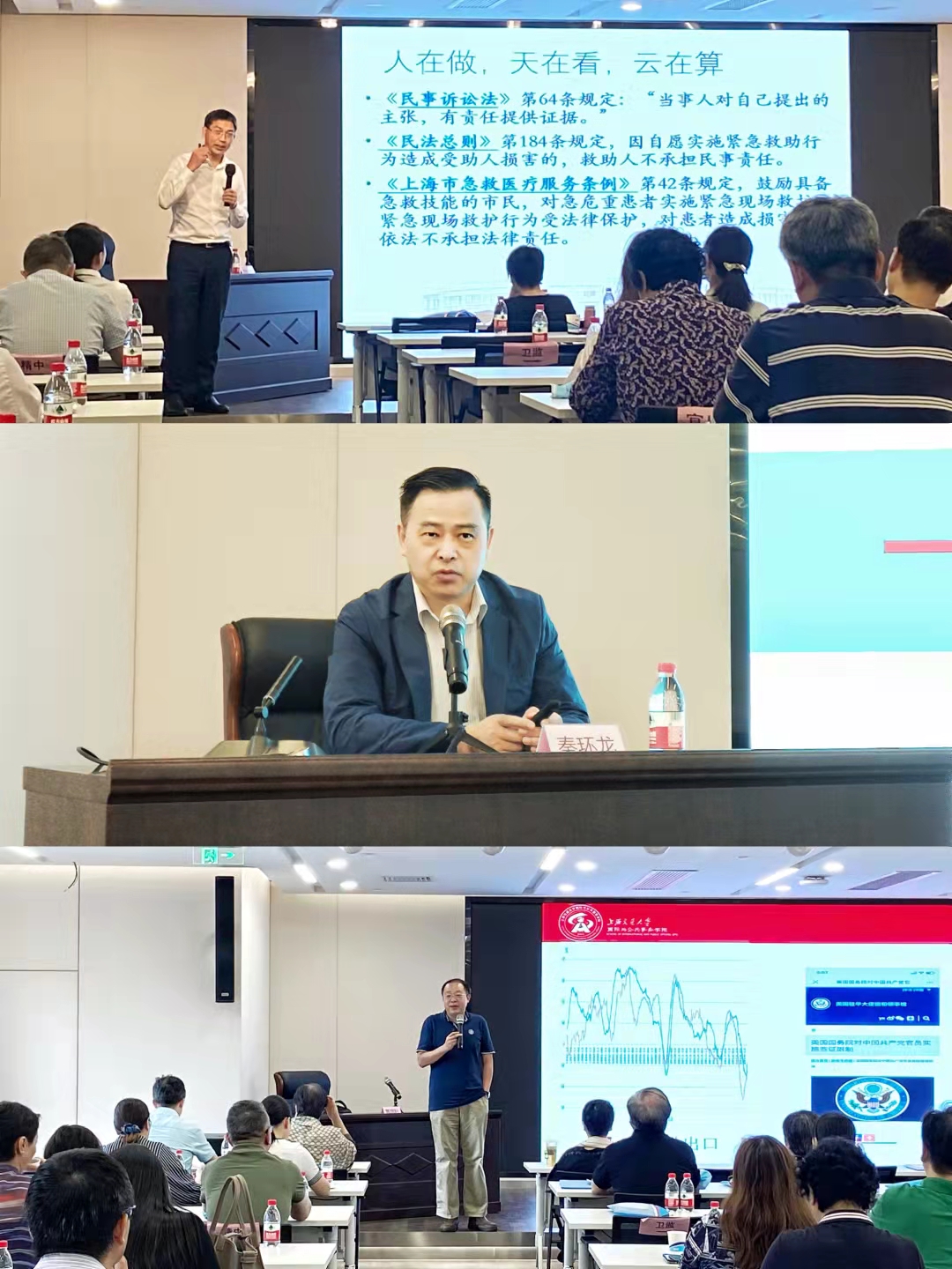 本次系列课程特邀上海市司法局罗培新副局长、上海市第十人民医院秦环龙院长、普陀区纪委监委第六派驻纪检组伍贤民组长、瑞金医院信息中心赵艳主任、上海市第一人民医院周建军总会计师、上海交通大学国际与公共事务学院国际关系系黄琪轩副主任、华东政法大学新媒体数据研究院孙祥飞教授分别就《上海市医疗卫生人员权益保障办法》、《医院绩效管理实践与探索》、《医院信息化管理》、《财务报表分析》、《国际国内形式分析》等专题进行了精彩的授课!